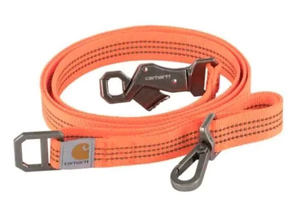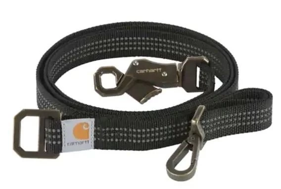 The Tradesman Leash is constructed with rugged flat-nylon webbing and extra-tough duck weave. Perfect for cold-weather walks, the metal trigger-claw clasp is easy to use with winter gloves on. It has multiple quick attachment options for tethering, and reflective triple-needle stitching for visibility in low-light situations.