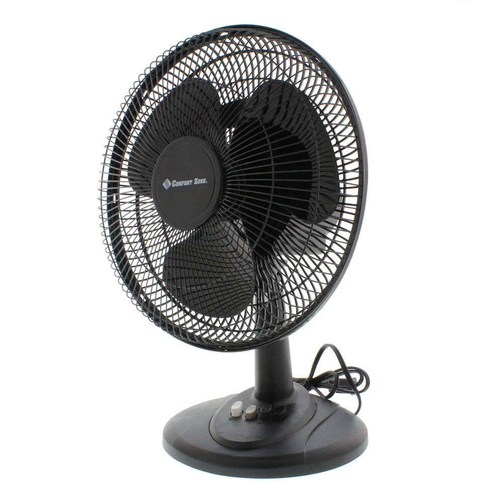 Features of Comfort Zone Standard Oscillating 3-Speed Fan – 12″