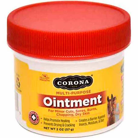 For over 100 years, Corona Ointment has been protecting skin and helping to promote the natural healing of minor cuts, sores, burns, chapping, and dry skin. Corona Ointment has been a staple in horse wound care kits for years and works so well that no barn should be without it!