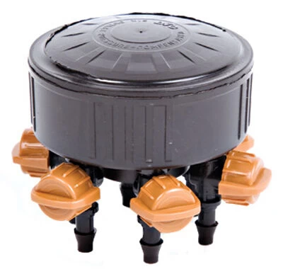 It has six independently adjustable, pressure compensating outlets with flow rates between 0 and 20 GPH at operating pressures of up to 50 PSI.