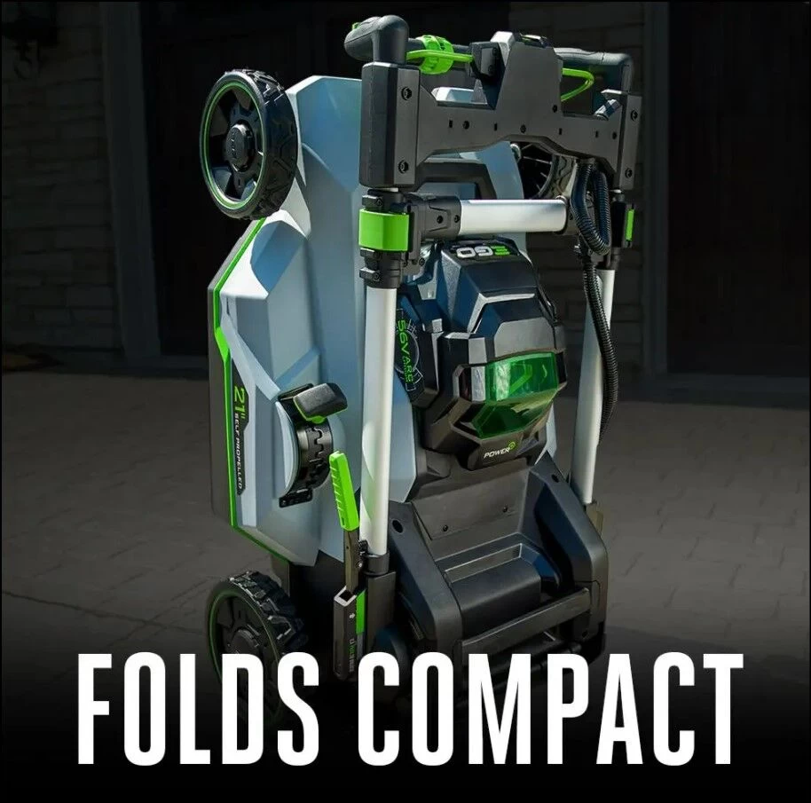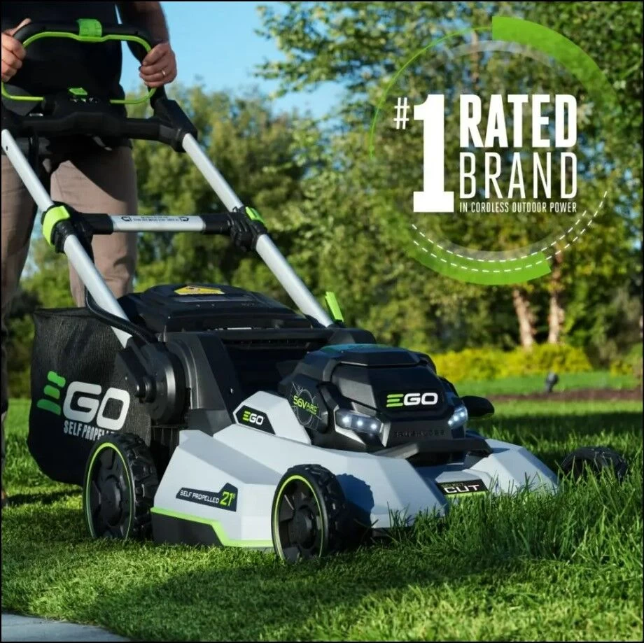 The EGO POWER+ 21″ Select Cut Self-Propelled Mower delivers performance that exceeds the power of gas. The Select Cut™ Multi-Blade Cutting System is equipped with three interchangeable lower blades: the Mulching Blade, High Lift Bagging Blade, and Extended Runtime Blade. The Mulching Blade comes installed on the lawn mower and is ideal for weekly mulching, giving you the mulching quality expected from a high-end gas lawn mower. The High Lift Bagging Blade provides extra suction ideal for bagging, leaving your yard free of clippings. The Extended Runtime Blade provides an optimal balance of cut quality and runtime for all around performance. All three blades can be used interchangeably based on your desired cut. The Upper Blade is used in combination with the lower blade chosen to slice the grass into fine fragments, greatly enhancing cutting performance with all grass types. EGO Touch Drive™ self-propelled technology puts complete control of the self-propel system in the palm of your hands by using pressure to engage the system. Easily control the variable speed with a dial positioned at your fingertips for safe and convenient operation. The Select Cut™ cordless lawn mower harnesses the power of the industry’s most advanced 56V ARC Lithium™ batteries to deliver up to 60 minutes of runtime on a single charge with the recommended 7.5Ah battery. Three-in-one functionality delivers your choice of mulching, side discharge, or bagging your grass clippings; an easy-access two-bushel grass collection bag is included. This electric lawn mower includes bright LED lights for added visibility when mowing at dawn or dusk, and it folds for compact storage between cuts. Experience Power Beyond Belief™ with the EGO POWER+ 21″ Select Cut™ Self-Propelled Lawn Mower.