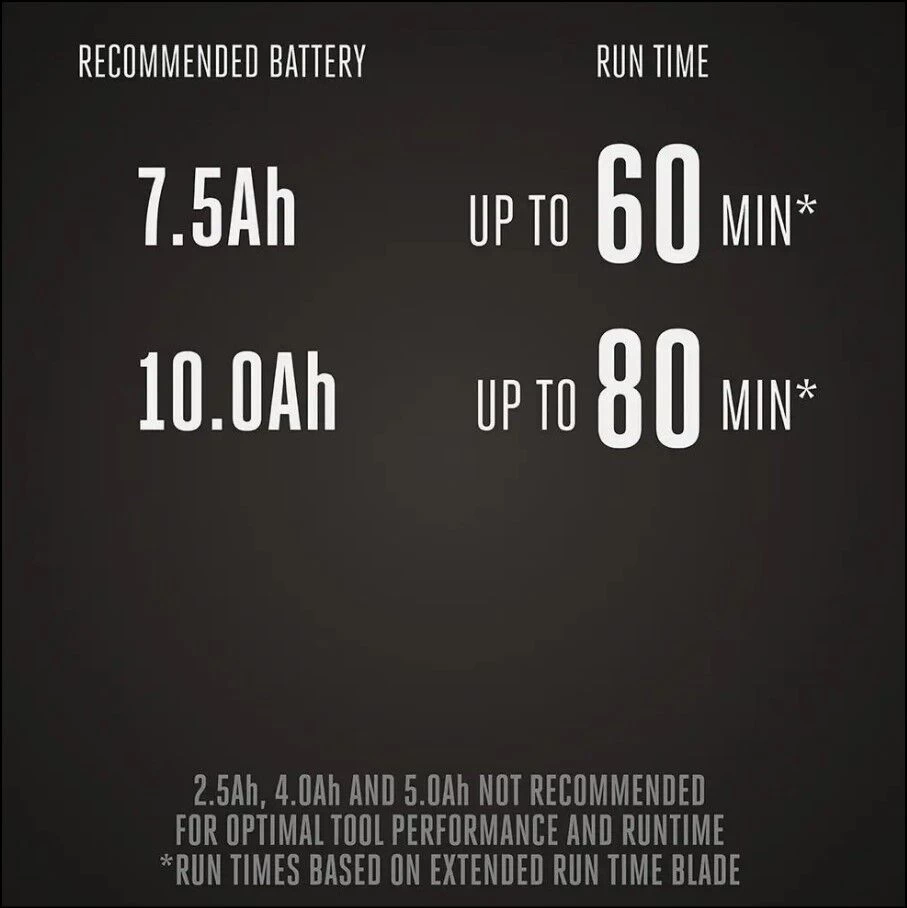 - Up to 60 minutes of runtime on a single charge with the recommended 56V 7.5Ah ARC Lithium™ battery