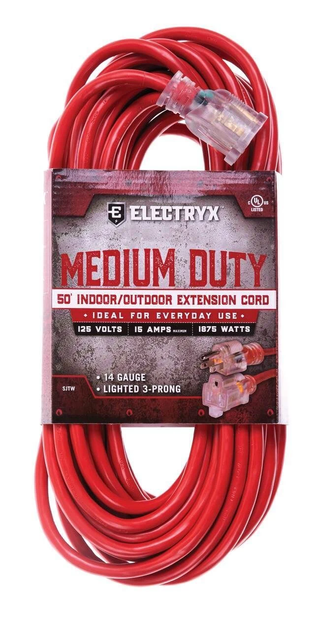 Electryx 50′ Medium Duty Indoor/Outdoor Extension Cord – 14 Gauge, Red