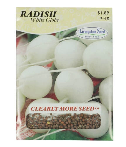 White Globe Radish is a wonderful glove-shaped radish with a snow white skin and interior. These quick-growing rashes are suitable for both spring and fall planting. Best harvested when approximately 1 in in diameter. White Globe Radish has a spicy flavor and crisp, yet tender, flesh. consistent moisture is important in growing tasty radishes.