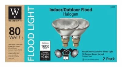 - Westpointe, 2 Pack, 80PARH1100F2-TV, 80W, Par38, Indoor/Outdoor, Standard, Halogen Flood Bulb