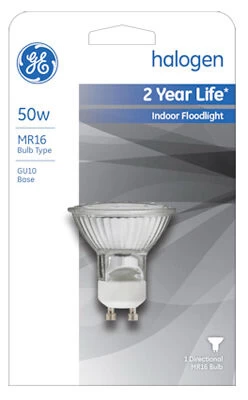 - GE, Q50GU10/FL/CD, 50W,120V, Quartz Halogen Flood Light