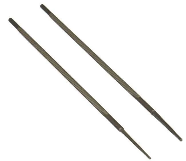 Round files to sharpen saw chain in a retail ready display.