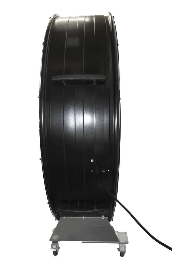 - Two casters lock via foot pedeal to keep the fan safely in place during operation.