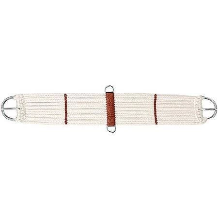 15 strand white rayon cinch with nylon wrapped center and cross bar ends. Features 3” nickel plated straight pull buckles and 1” dees.