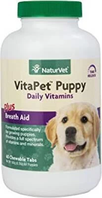 VitaPet™ Puppy Daily Vitamins Plus Breath Aid is veterinarian formulated to supply vitamins and minerals important to growing puppies. The gradual release provides a balanced absorption of nutrients.