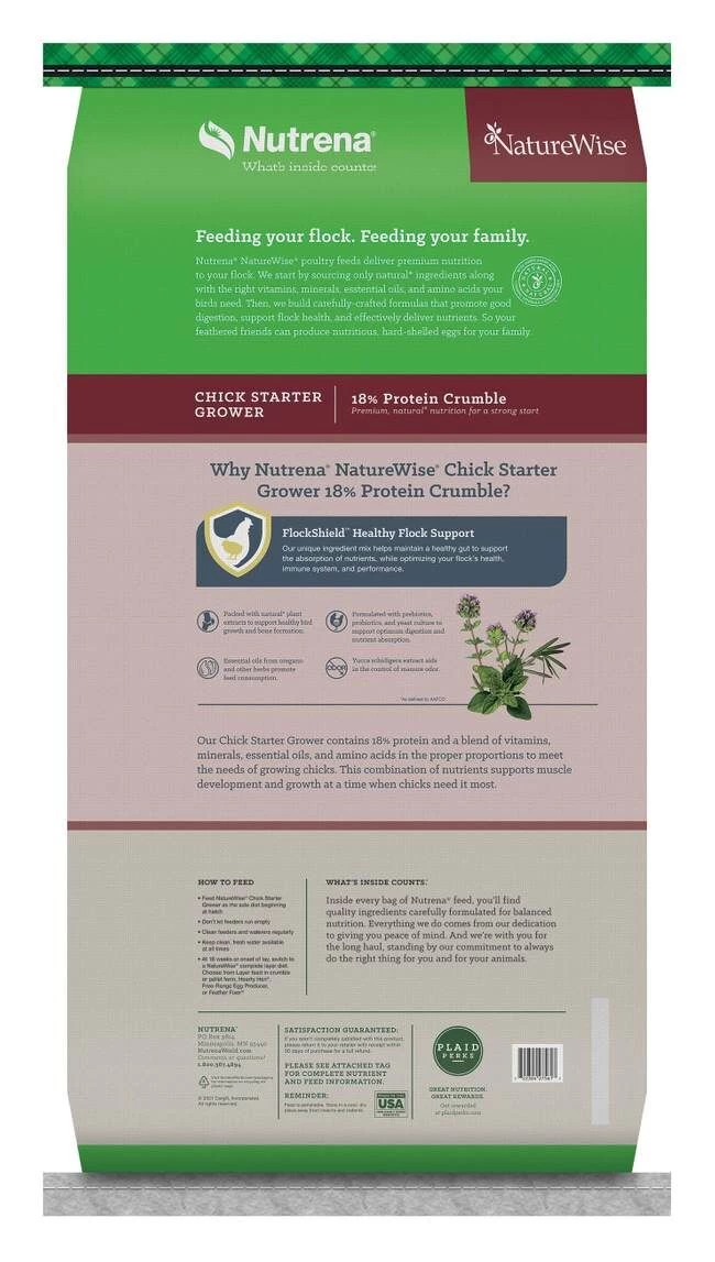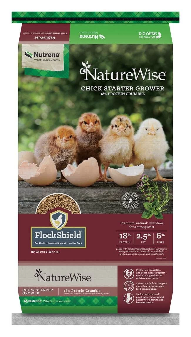 Nutrena NatureWise Chick Starter and Grower is the perfect choice for raising chicks. This non-medicated feed contains 18% protein and is crafted to raise happy and healthy chicks. It provides complete natural nutrition for your birds.