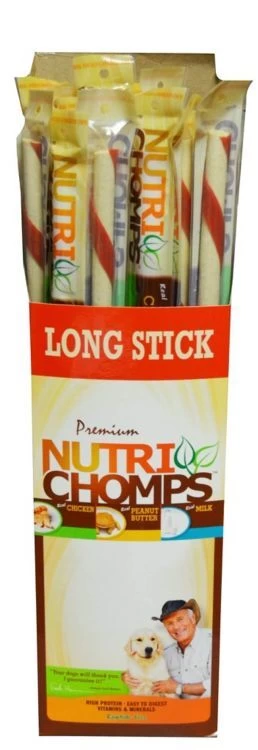 Premium Nutri Chomps 15″ Chicken Wrapped Long Sticks are rawhide-free dog chews. Veterinary Recommended Premium Nutri Chomps are safe & healthy dog bones. . In 2012, The University of Illinois College of Veterinary Science conducted a study which proved pork skin to be fully digestible and significantly more digestible than beef rawhide. Jungle Jack Hanna has endorsed the Premium Nutri Chomps brand as a safe and healthy rawhide alternative. Chicken Wrapped Mini Twists are perfect for Miniature Dogs, Small Dogs, and Medium Dogs.