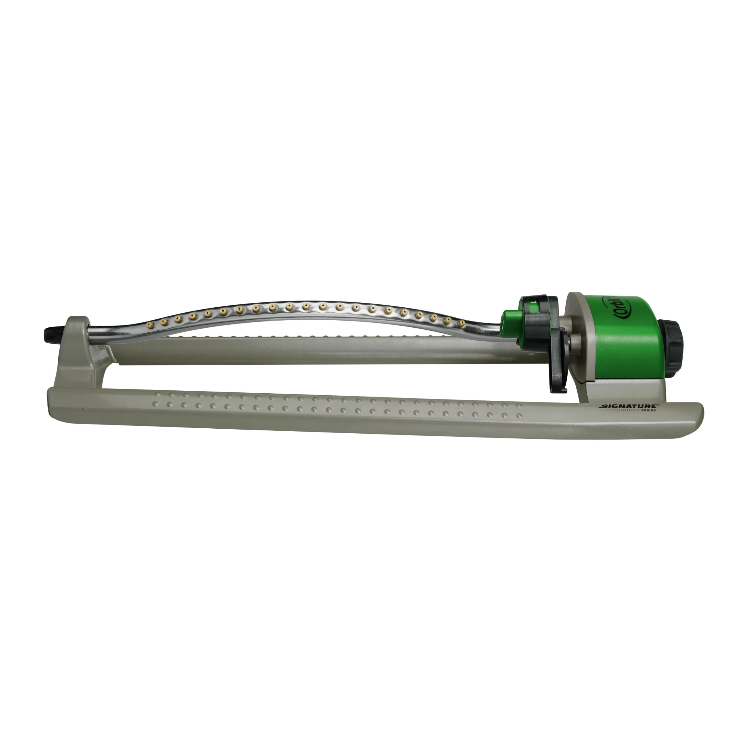 Orbit sun mate 3600 sq. ft oscillator. this oscillator features a heavy duty planetary gear train and smooth action cam drive. the all metal tubes and jet nozzles provide even water distribution. the wide base has been designed to make repositioning easy and reduces tipping during watering.