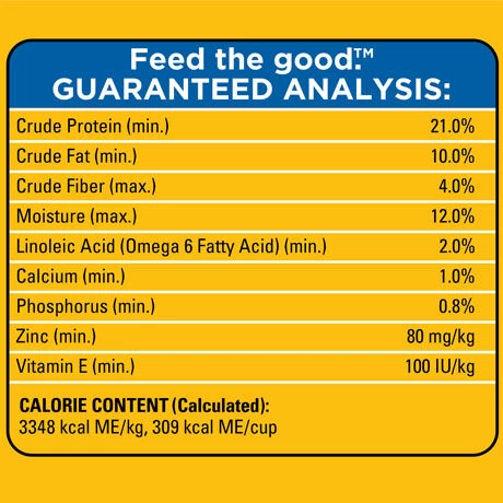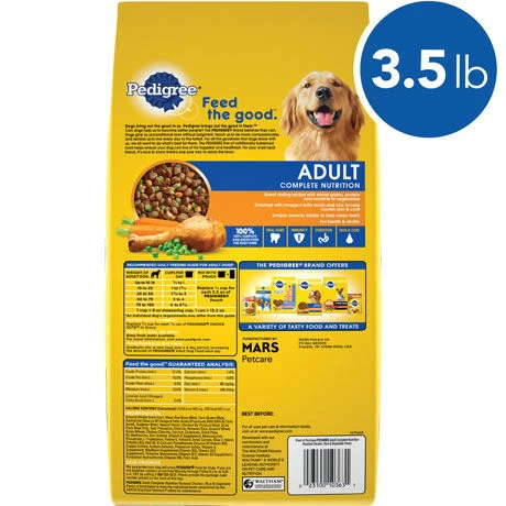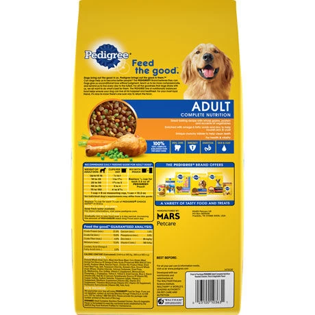 PEDIGREE Adult Complete Nutrition Roasted Chicken, Rice & Vegetable Flavor Dry Dog Food is formulated to give dogs all of the energy and nourishment they need to continue living life to the fullest. This chicken-flavor dog food is packed with B vitamins, zinc and omega-6 fatty acid to help keep adult dogs looking their best. PEDIGREE Dry Dog Food also contains leading levels of the antioxidant, vitamin E, to help keep adult dogs’ immune systems strong. Plus, this balanced dog food features our special fiber blend, which helps promote healthy digestion, to keep yard patrol in control. Feed your dog this oral care kibble to help keep teeth clean and give them a great taste.