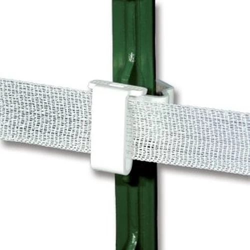 - 25 Pack, White, Poly Tape T-Post Insulator