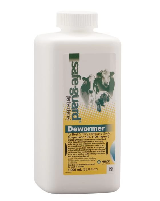 Safe-Guard® Suspension (Fenbendazole) is indicated for the removal and control of lungworms, stomach worms (adults), brown stomach worms, stomach worms (adult and 4th stage larvae), barber pole worms, small stomach worms, intestinal worms (adult and 4th stage larvae), hookworms, thread-necked intestinal worms, small intestinal worms, bankrupt worms and nodular worms. For beef, dairy cattle and goats. Treatment shows a clear advantage in dry matter intake, feedlot gain, pounds of beef produced and improved health.