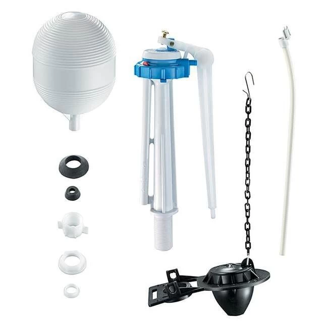 - Kit includes adjustable height anti-siphon ballcock with adjustable float rod, flapper tank ball, toilet tank float, refill tube and holder