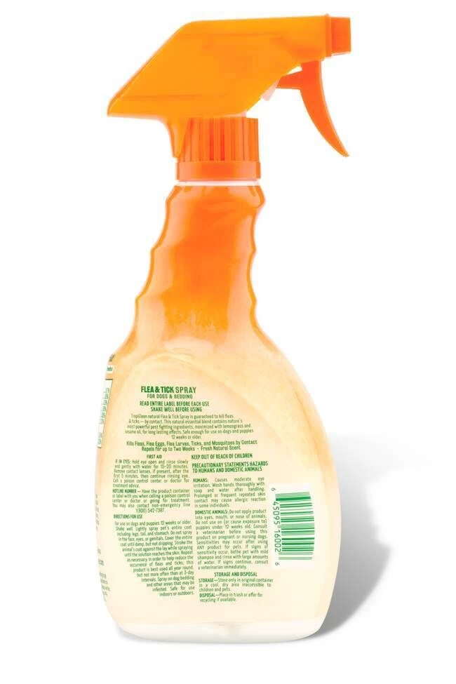 TropiClean Flea & Tick Spray for dogs and bedding is guaranteed to kill fleas and ticks by contact. This natural essential blend contains some of nature’s most powerful pest fighting ingredients like lemongrass for long lasting effects. Powerful and effective it is safe enough to use on dogs and puppies 12 weeks or older.
