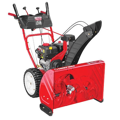 Featuring new airless tires that never go flat and a reliable 243cc* Troy-Bilt engine, the Storm 2860’s large 28″ clearing width will tackle larger jobs in less time – up to 16 inches of heavy, wet snow. The Just One Hand® Operation lets you guide the two-stage snow blower with one hand, freeing the other hand to adjust the chute and pitch. The in-dash headlight will help you to clear snow in low-visibility conditions, and the heated hand grips will add comfort in cold weather.