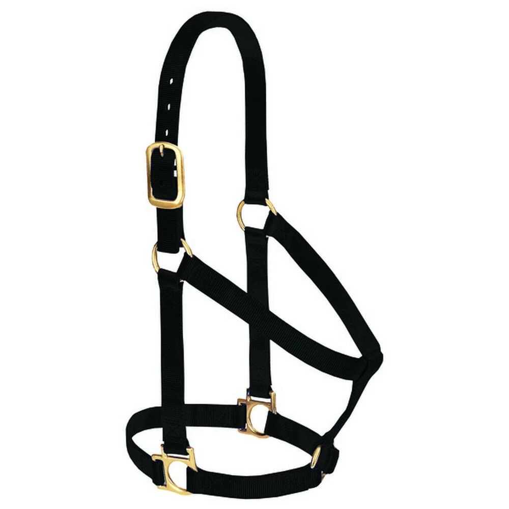 - With features like brass plated hardware, box-stitching at stress points and oblong buckle holes, this 1″ non-adjustable nylon halter is a great buy.