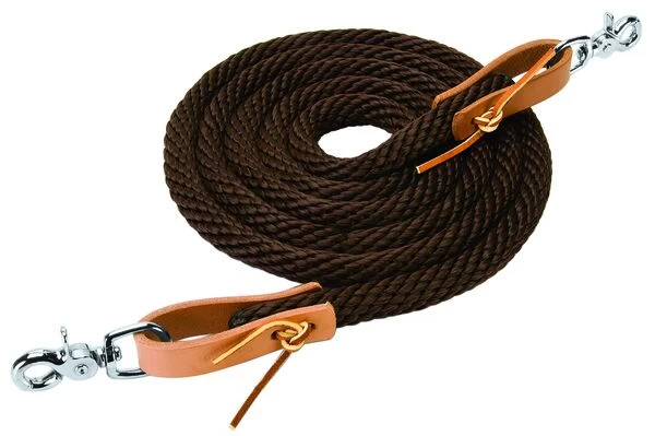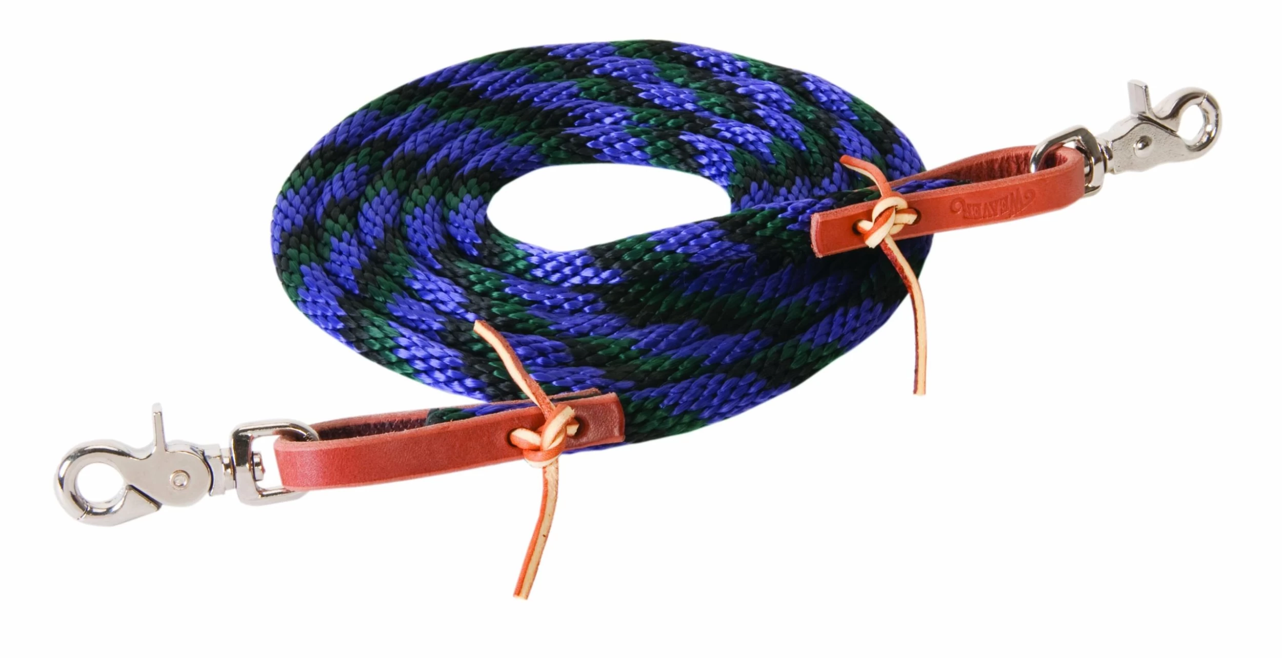 - With a soft, broken-in feel, these poly roper reins feature assorted harness leather water loops attached with leather laces and scissor snaps.